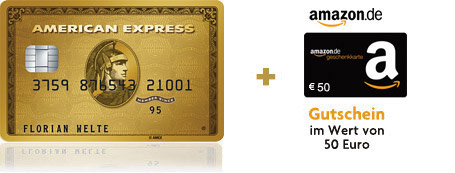 Bis zum 30.09.2012 hat American Express ein Exklusives Abschluss-Angebot für seine Kunden eingerichtet. Kunden, die eine Gold Card erhalten und innerhalb der ersten 3 Monate einem Umsatz von 200 Euro vorweisen können, bekommen einen Amazon.de Gutschein im Wert von 50 Euro geschenkt.